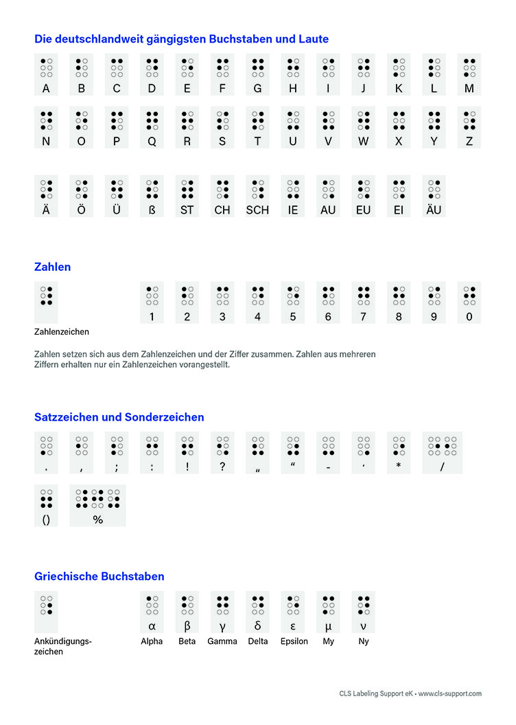 Die in Deutschland meist verbreitete Blindenschrift in der pharmazeutischen Industrie ist die „Marburg Medium Braille“.